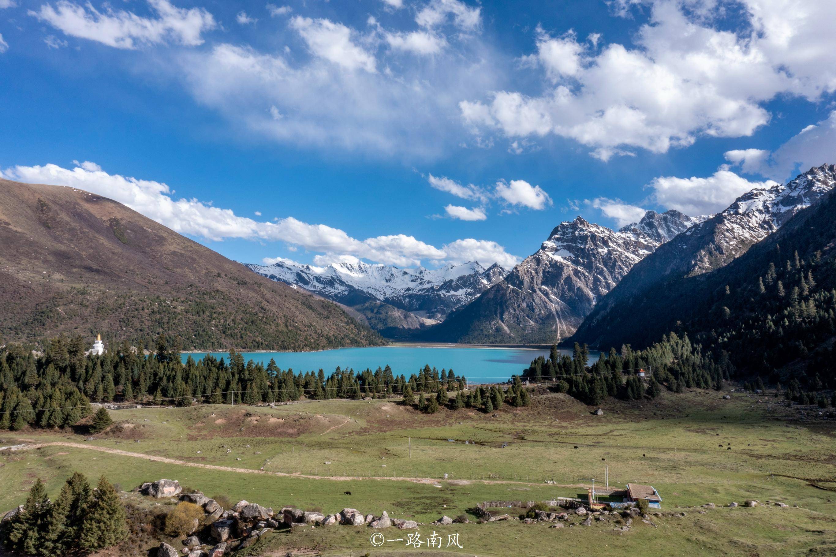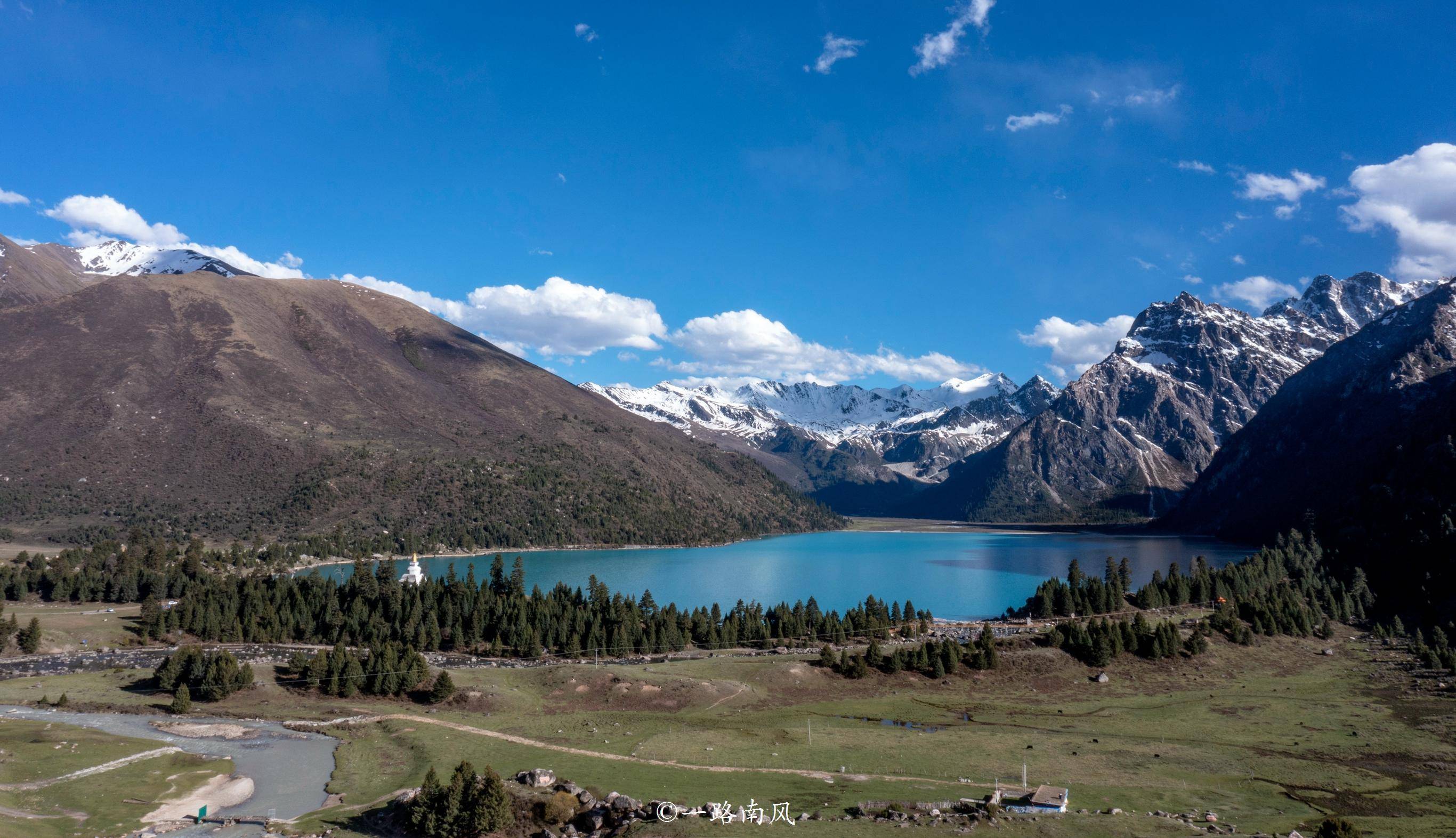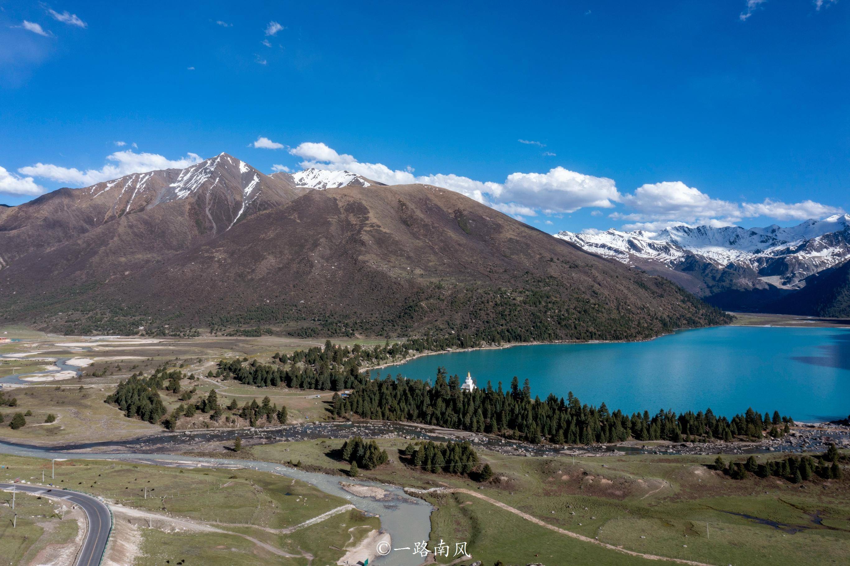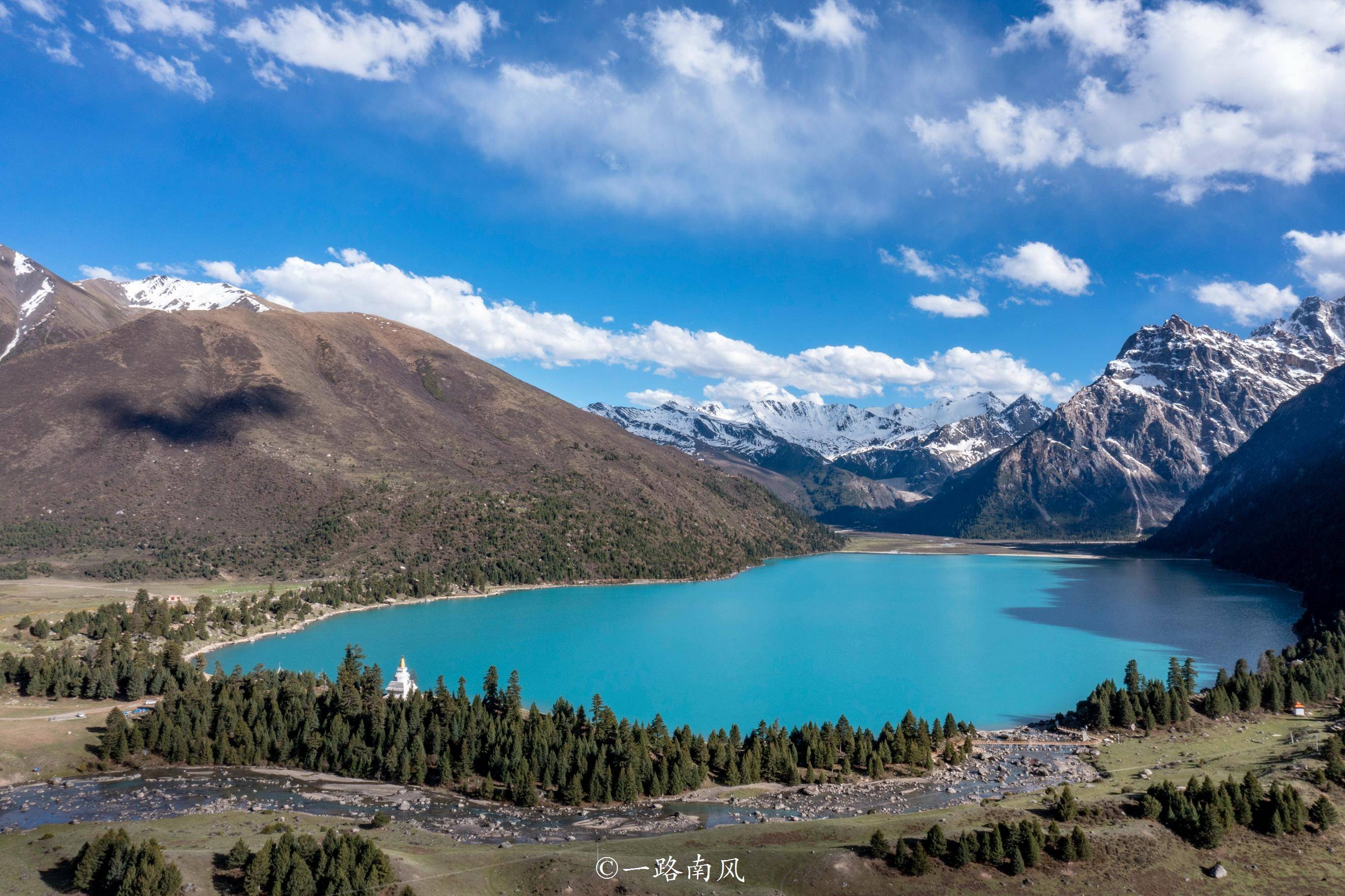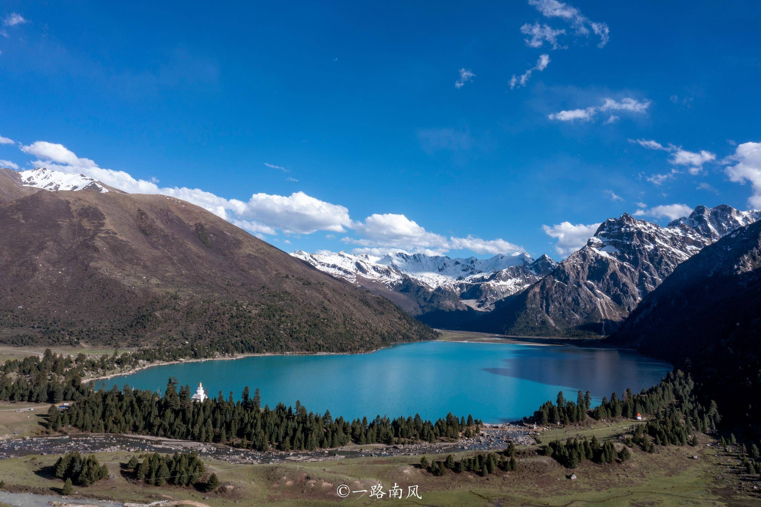 上个月我和朋友一起去了昌都。回来的路上,离开江达县,经317、318路返回重庆,步行到德格县雀儿山脚下,发现了一个非常美丽的湖。湖中覆盖着针叶林,湖水呈翠绿色。湖边山峦连绵,南侧山峰白雪皑皑,像一滴巨大的绿色眼泪,又像一颗诱人的宝石。