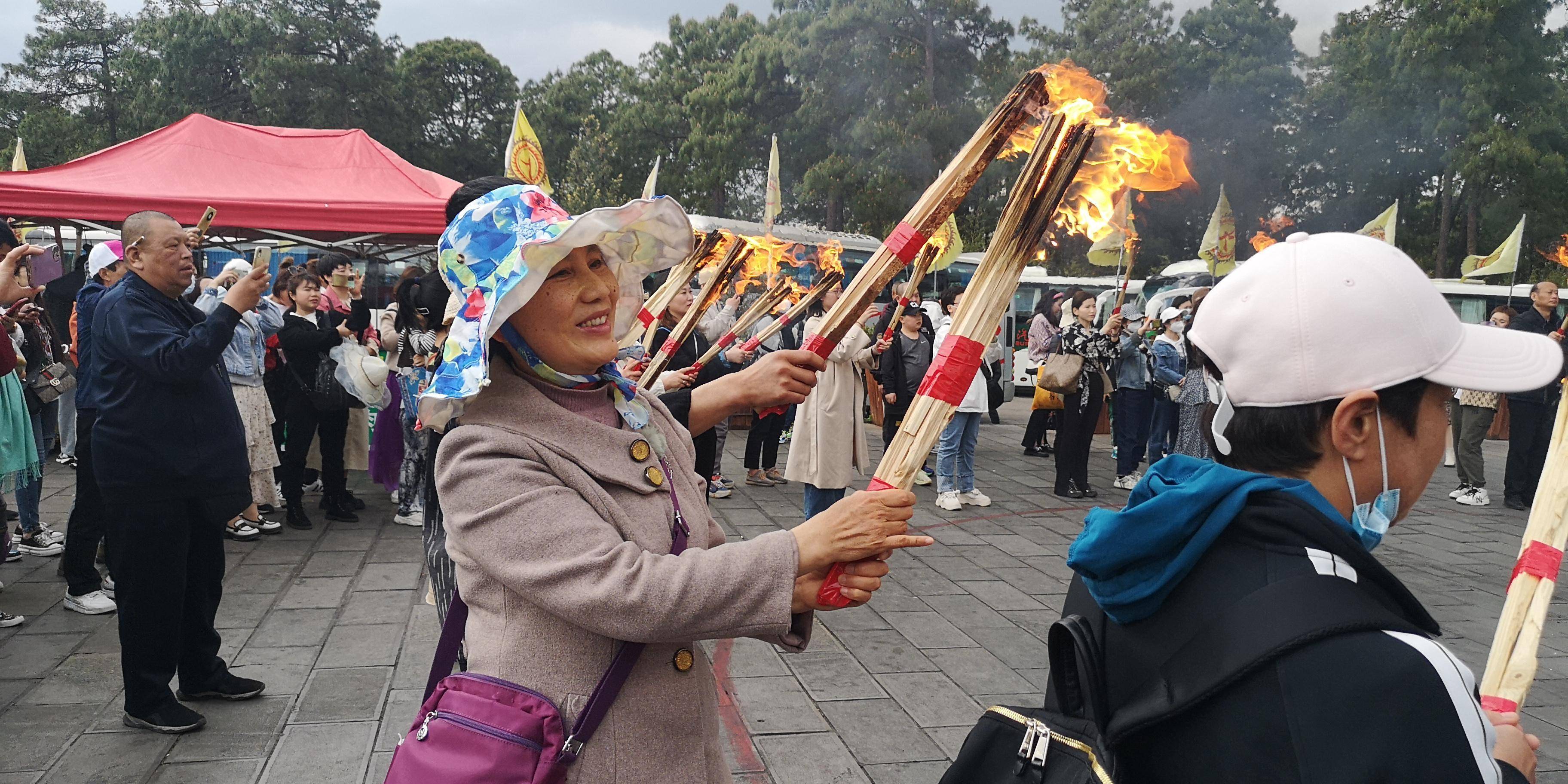 最后的开幕仪式是彝族的火祭。火祭仪式由“敬酒”主持,游客参加。参加的游客需要每人花费20元购买手电筒。火祭仪式结束后,游客们在2023广场聚集火把,进行大剃须。在灼热的火光下,阿黑格·阿诗玛和来自世界各地的游客围着火把跳舞说“你好”,场面十分火爆。