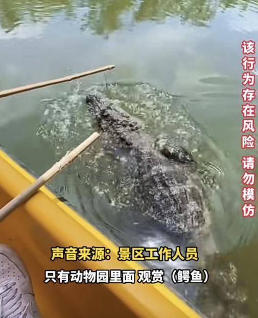 该负责人还说,网上视频中的游客钓鳄鱼,其实是对鳄鱼的一个投喂行为,属于人鳄互动环节。“这几年下来没有发生过游客安全事故,非常安全。我们在互动区有防护栏,游客进场也必须穿戴救生衣,且一直有安全员在现场,防止游客落水。”