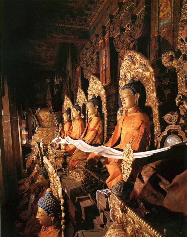 但这里确实有着不少的宝物,它后来也成为了西藏的核心地带,由于佛教的盛行,它在这里更是有着神圣的地位,其实我们看古代的佛教,能发现一种非常特殊的现象,就是很多的佛教寺庙,里面像佛像,法器这些东西,都是喜欢用黄金打造,这也是有着一定原因的,因为黄金稳定性相当强,长期保留也不会消失,佛教寺庙向来是不缺钱的,中原王朝也有很多的时期,各地大修佛寺,里面积攒了无数的财富,布达拉宫也是一样的,它不仅屋顶上就有着大量的黄金,里面的佛像这些都是黄金打造。