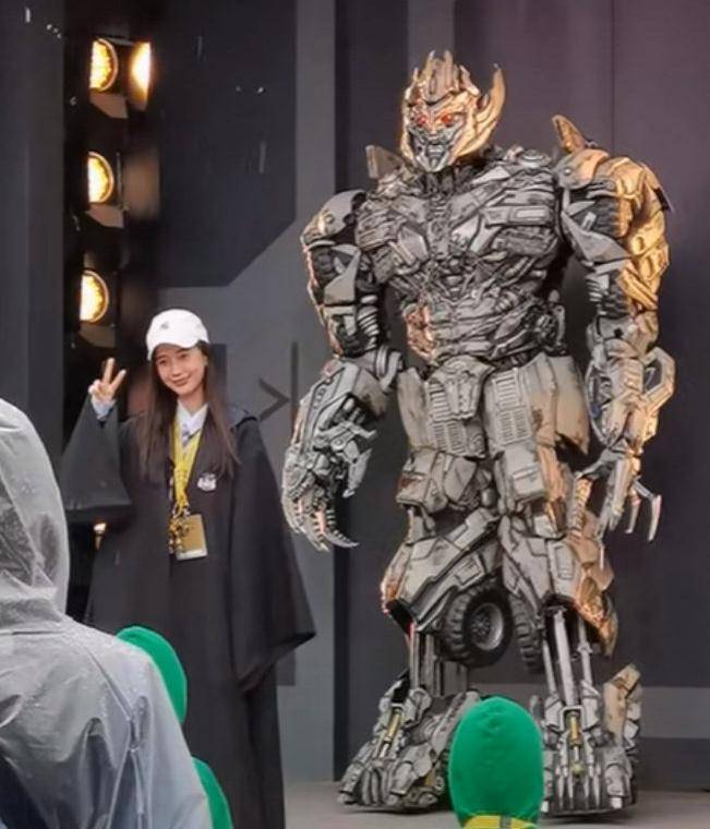 Angelababy现身环球影城,和威震天同框超可爱,小海绵身高喜人!