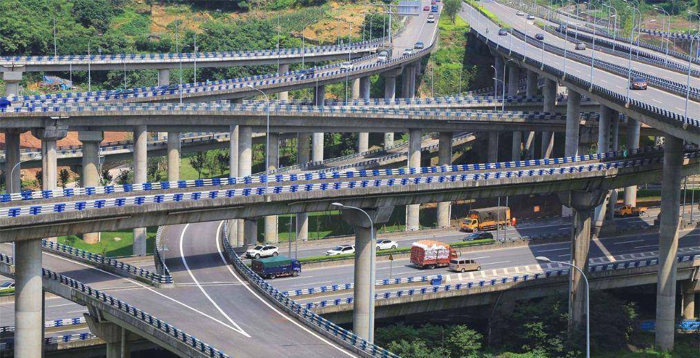 黄桷湾立交桥是重庆主城最大最复杂的立交桥,黄桷湾立交是连接朝天门大桥、慈母山隧道、内环高速、机场专用快速路的重要节点。该立交共五层15条匝道。黄桷湾虽然匝道很多,但是一定程度上也是大大节约了人们的时间的。这座立交桥刚建成时,很多人都走不明白,就算有导航依旧也会迷失方向。