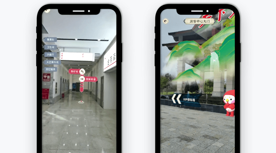 只需要选择目标位置,游客就可以直接通过手机屏幕观看面前的道路实景,根据导航箭头和标注,轻松到达景区大巴乘车点、游客驿站、游客中心、售票处、卫生间、医疗室等位置。