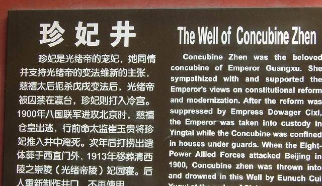 珍妃死后,尸体在井里泡了一年多,直到第二年,辛丑回銮后,慈禧太后未免理亏,将珍妃死因归结于崔玉贵逞能将珍妃推进井里,自己只不过当时在气头上。