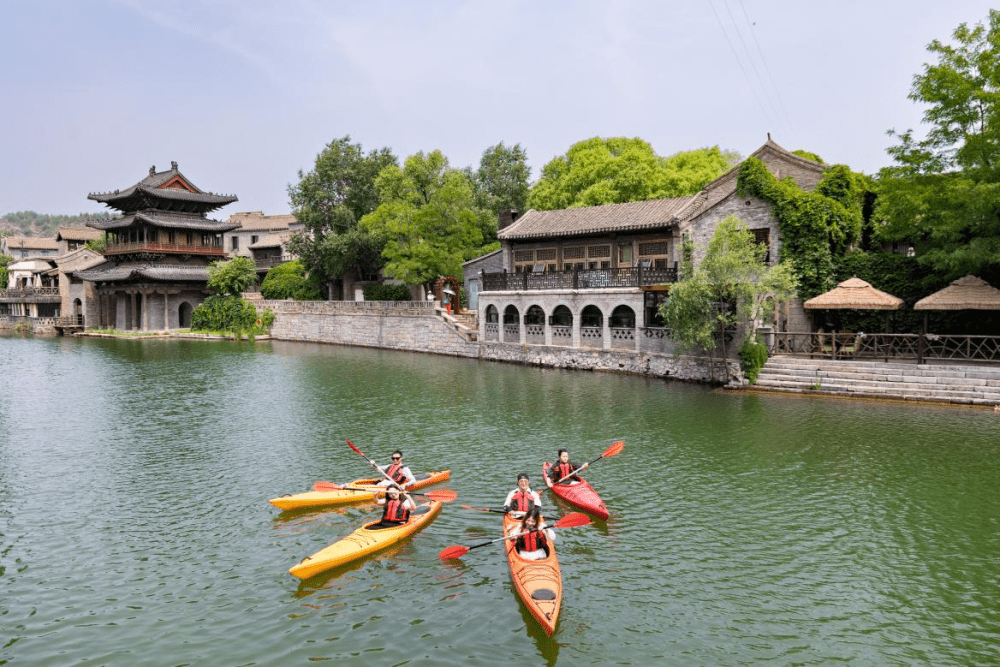 炎炎酷暑的盛夏,古北水镇举办了“爱在古北,清凉一夏”的泳池派对活动,提供了各类泳池玩具,可以让孩子肆意玩耍!另外还有适合大人的水中拔河赛、救生圈接力赛等参与感十足的活动。除此之外,还有乒乓球大捞捕等亲子游戏。泳池的地理位置也相当便利,泡在泳池中眺望远处的司马台长城无比惬意。另外,景区还推出了风靡全球的水上运动——皮划艇,在蓝天白云下,青山绿水当中,和三五好友相约一起来场皮划艇比赛,挥动手上的桨板,激起阵阵水花,感受水上运动的柔美和力量。