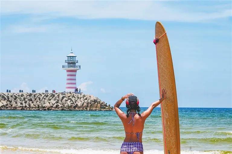 流行影视荧屏效应溢出,进一步带火海南旅游市场7月11日,陵水清水湾,一座红顶白墙的灯塔矗立在岸边,连接岸滩的堤坝上,不少游客拿出相机或手机拍照“打卡留念。