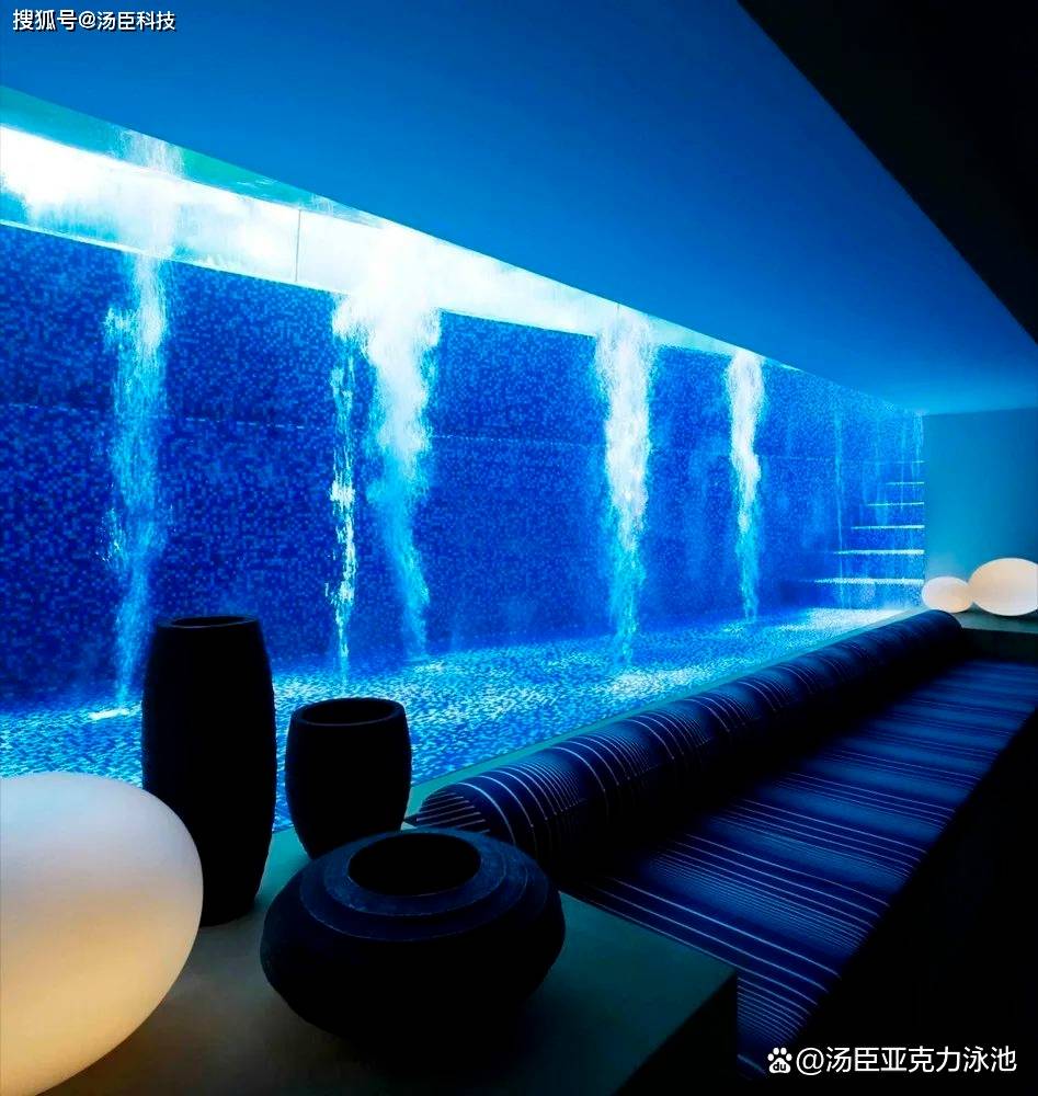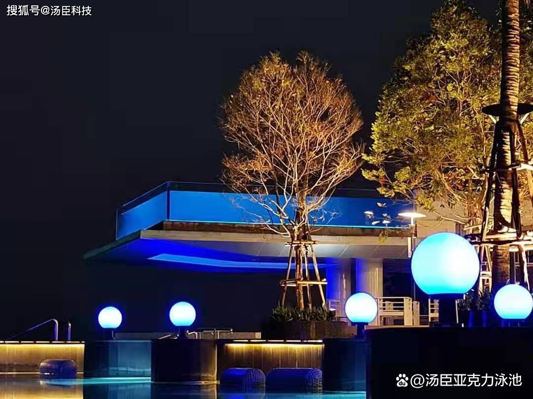 再比如说灯光,亚克力材料透光率很好在93%以上,灯光可以近乎无阻碍地透过池壁照射在池底、池水,随着水流营造出波光粼粼的绚丽效果,非常适合夜间游泳或者装饰。