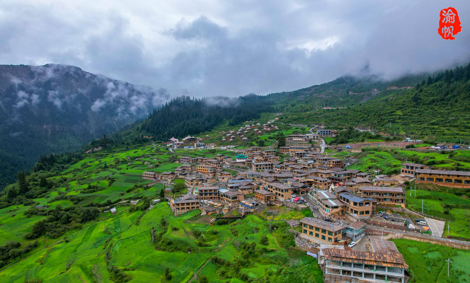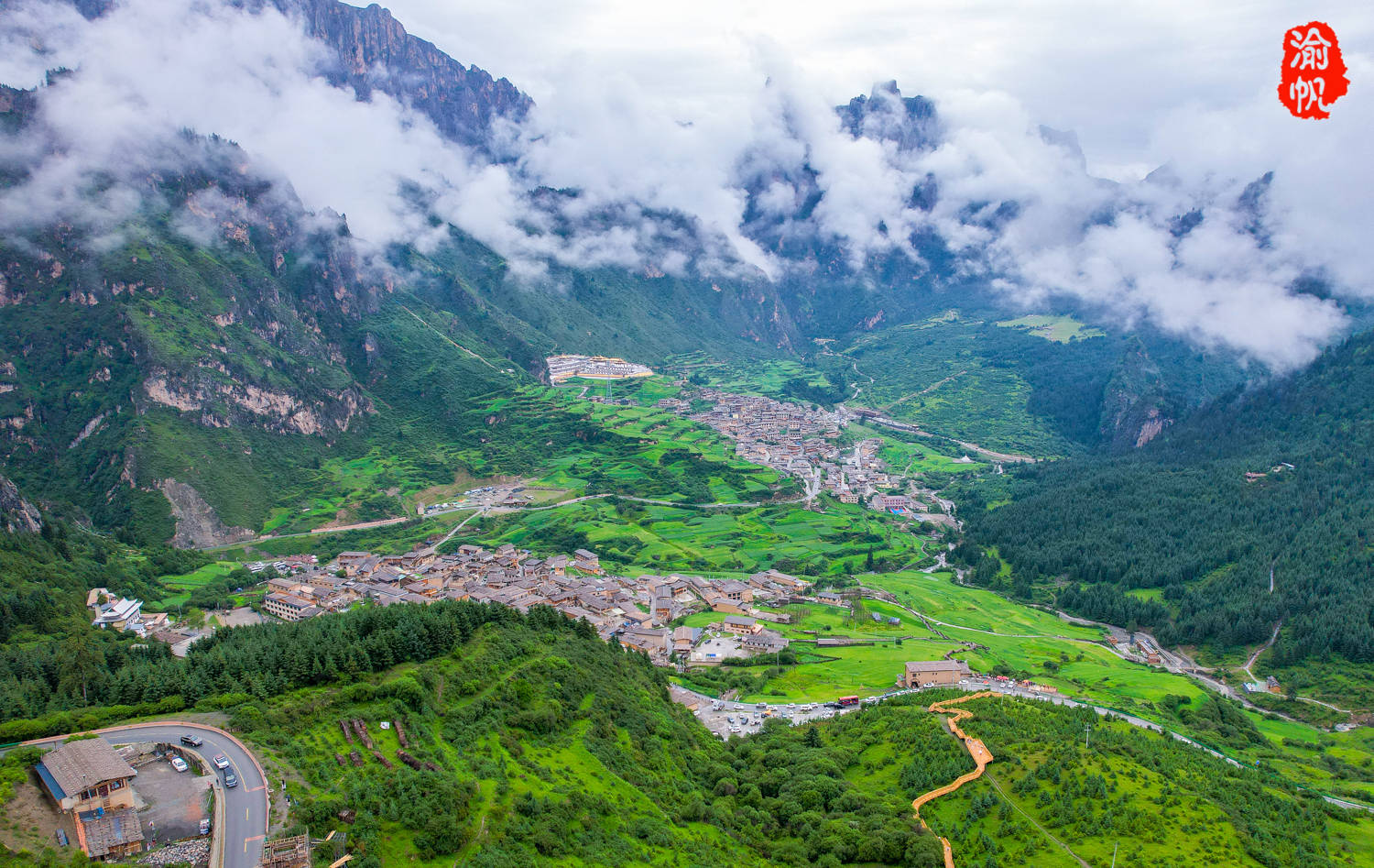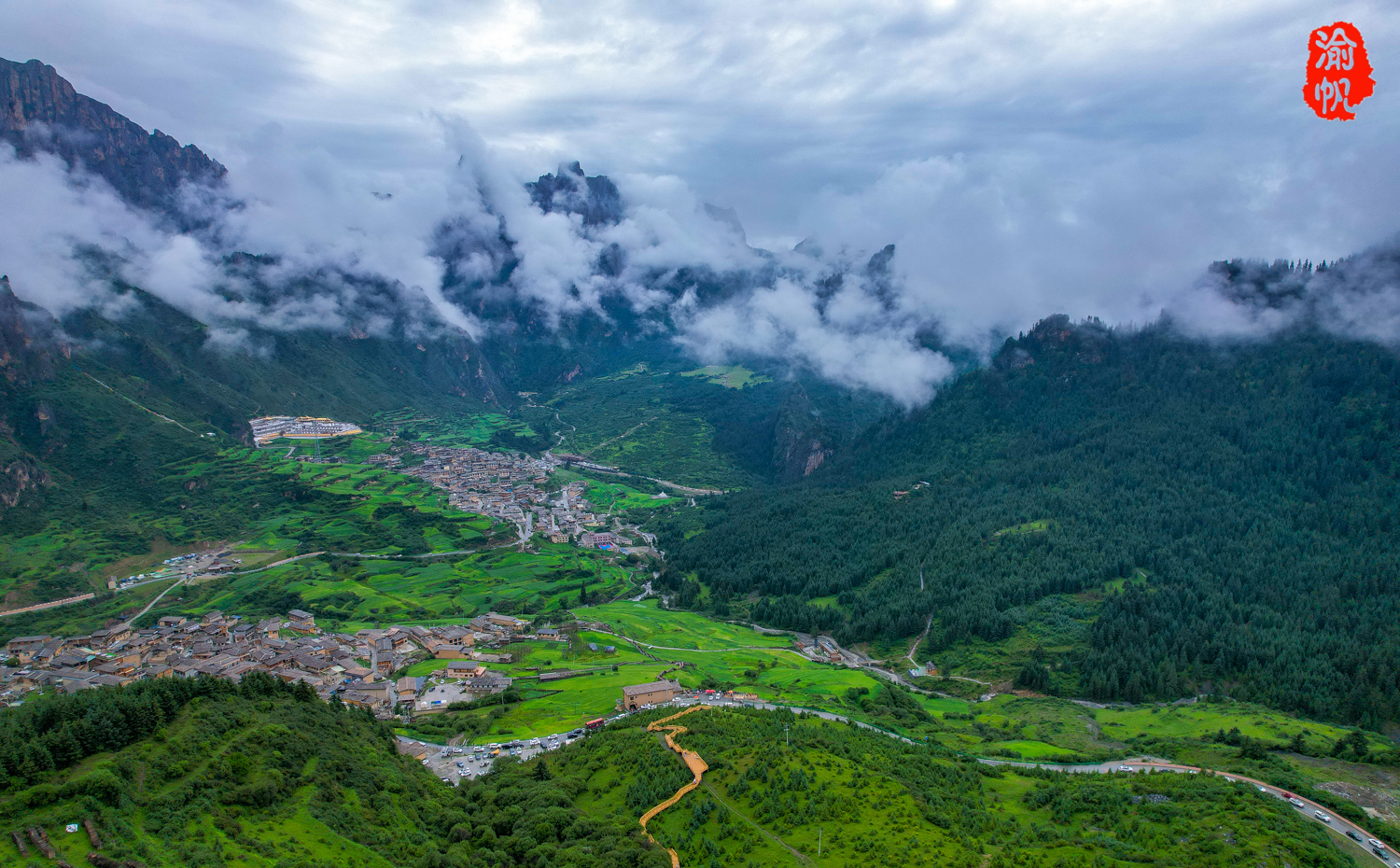 我们当天游览扎尕那有些匆忙,只有半天的时间,而且天气并不算好,雨一直下,好在云雾缭绕,也算是另一种美,找到一个小雨初歇之际,升起无人机来拍下了这组照片(天晴的照片为迭部官方提供)。
