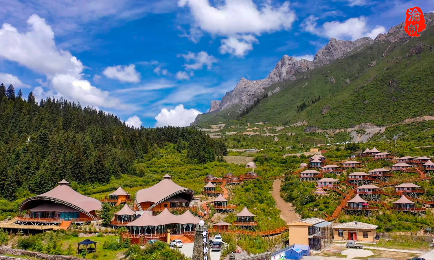 当年洛克从甘南卓尼扎古卢乡到迭部扎尕那的科考路线如今叫洛克之路,这段路被誉为“中国最美的100公里”。沿途有雪山、圣湖、蓝天,还有那围栏中的牦牛绵羊、傍晚时山谷间缭绕的炊烟,绵让人流连忘返,这条路的零公里就在扎尕那。