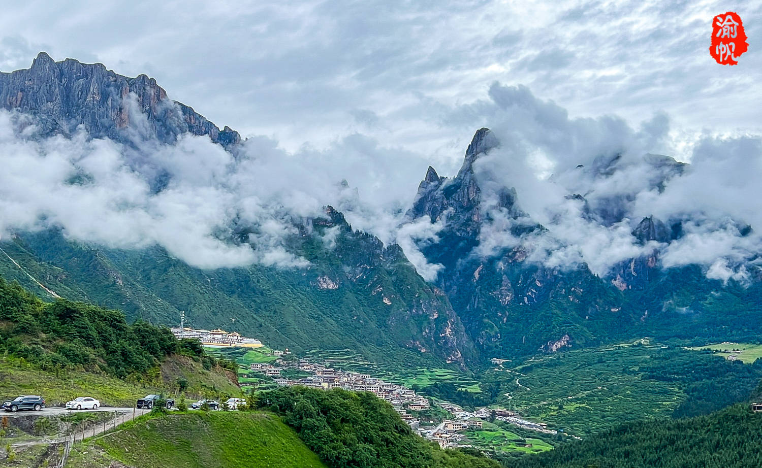 扎尕那位于甘肃省甘南州迭部县西北30余公里处的益哇乡,四周石峰林立,是一座天然的石头城,而扎尕那在藏语中是“石匣子”的意思,以渝帆的理解就是四周的石头山峰,形成了一个规模宏大的巨型宫殿,故得其名。
