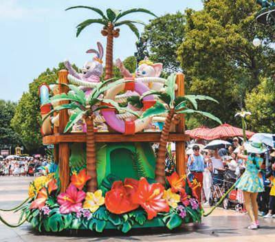 上海迪士尼乐园达菲缤纷夏日巡游正在精彩上演,吸引了众多游客。