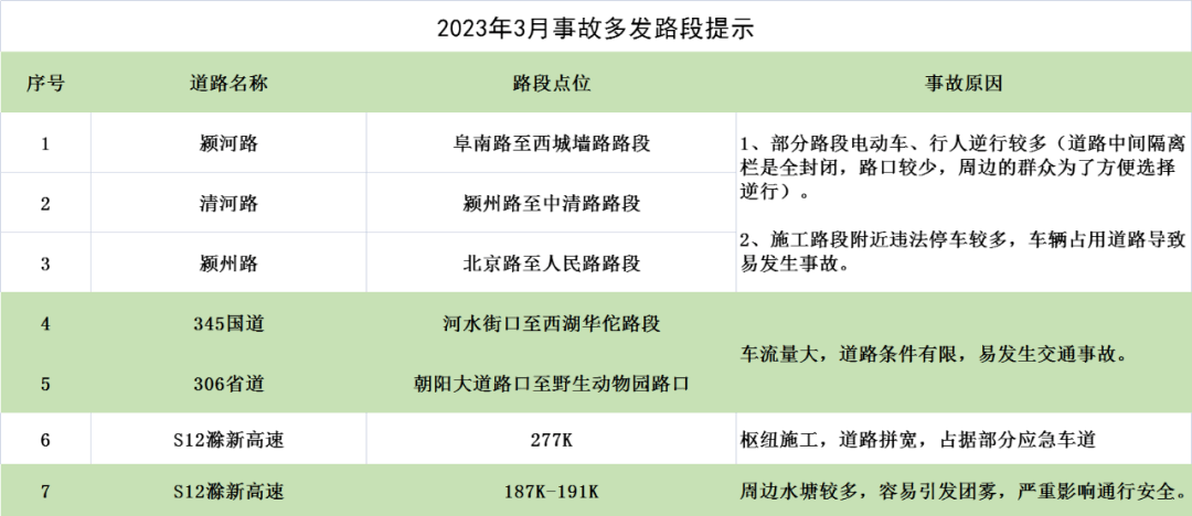 2、我市境内G36宁洛高速公路338km至348km路段、 352km至354km路段、362km至364km路段、383km至385km 路段;G35济广高速525km至539km路段、550km至559km路段;S12滁新高速公路190km至212km路段、238km至248km路段、276km至313km路段易发生团雾,请出行者谨慎驾驶。
