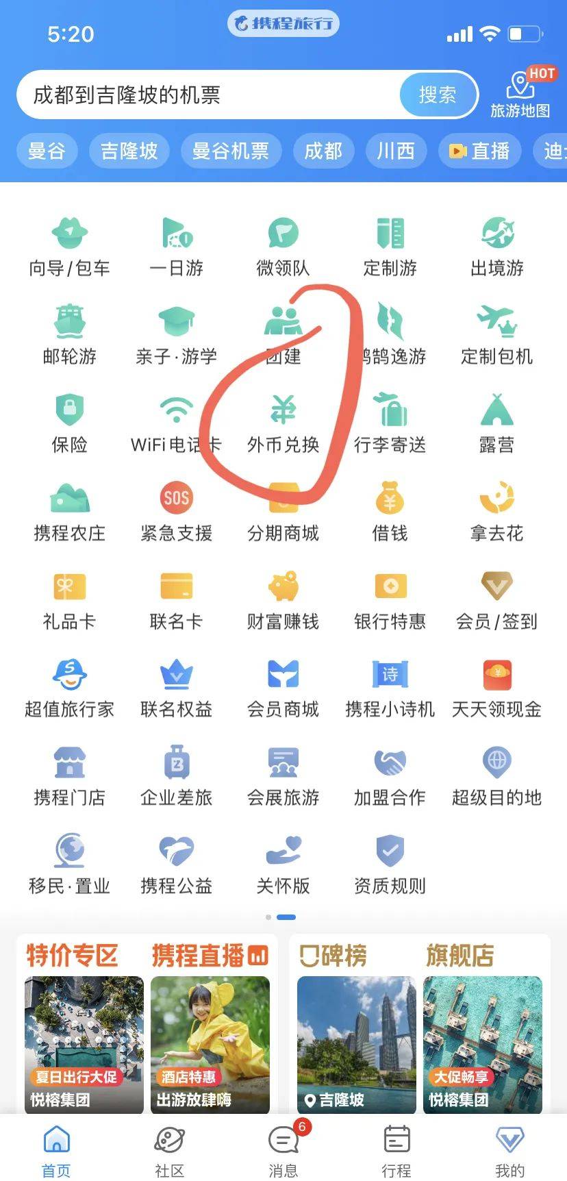 携程首页找到:外币换购 👉选泰铢👉预约👉出发机场取钱
