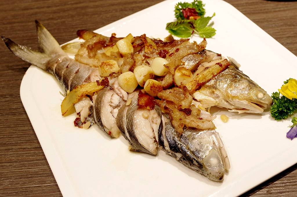 呛鯃鱼:用蒜子和煎片见油盐水呛焖的做法,能够保持鱼型完整,充分利用鯃鱼肉质细嫩,油脂和水分都比较丰富的特点,算是因材施策的好作法,呈现效果也很到位。
