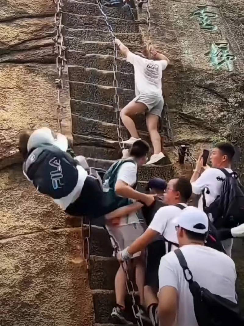 南都记者了解到,7月12日,一名游客在爬华山云梯时意外踩空坠落。网传视频中显示,该游客在攀登华山云梯过程中双脚不慎踩空,同时双手未能抓牢身侧铁索,因此跌落。