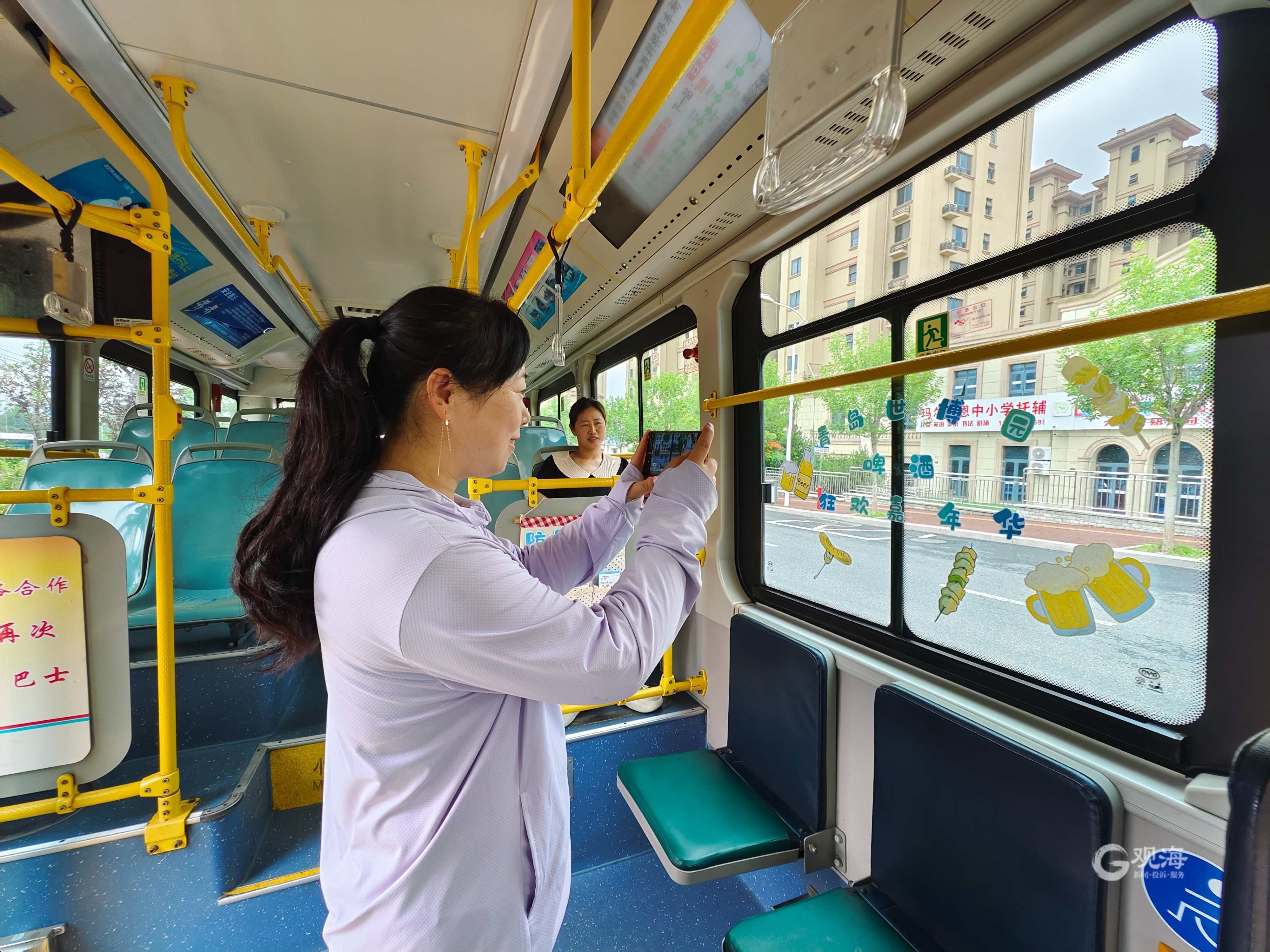 7月13日,李沧巴士390路90后驾驶员于士杰创意打造的“哈啤”主题车上线。车厢里,于士杰为乘客准备了凉扇、防暑药品,凉扇特地挂在了方便乘客取用的车座背部,车窗上,于士杰精心布置了创意贴纸,啤酒节的浓厚氛围扑面而来。于士杰笑称,“我这可是啤酒节流动分会场,欢迎大家乘车体验。”