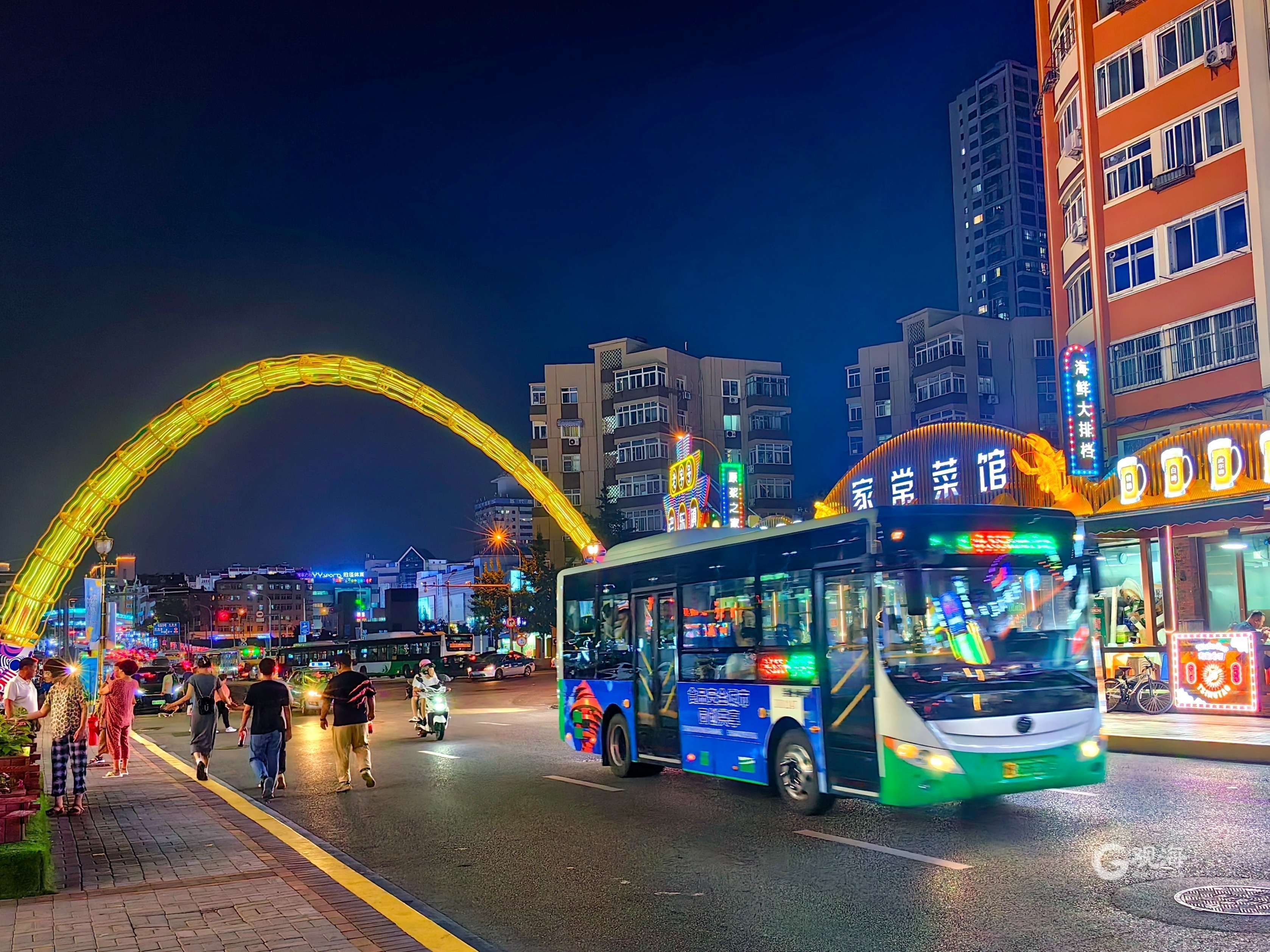 公交市南巴士205路作为夜游娱乐的经典公交路线,途经台东八路、台东六路、登州路等商业街区,台东步行街、台东夜市是市民和游客购物集中、实惠地道的好场所,大小商店云集,价格亲民,各种商品配套齐全。农贸市场、海鲜加工店、大排档、烧烤啤酒、小吃街、购物街,在这里都能找到!车窗外激光闪烁的彩绘墙体、啤酒元素主题卡通设施,动感的音乐与酷炫的光影交相辉映,坐上公交便可一站式沉浸式“微醺”夜生活。走进205路畅饮“醉”美主题车厢,浓郁的啤酒文化氛围迎面而来。随处可见色彩鲜艳的主题海报、青啤百年历史的传承故事、各色啤酒的相关介绍……“乘客您好,您此刻乘坐的205路公交车经过台东及啤酒街,在车内您可提前了解青岛啤酒百年发展的故事,感受岛城的时尚文化魅力。”驾驶员的提示下,乘客们纷纷抬头浏览相关知识科普,领略“啤酒之都”独特风采。