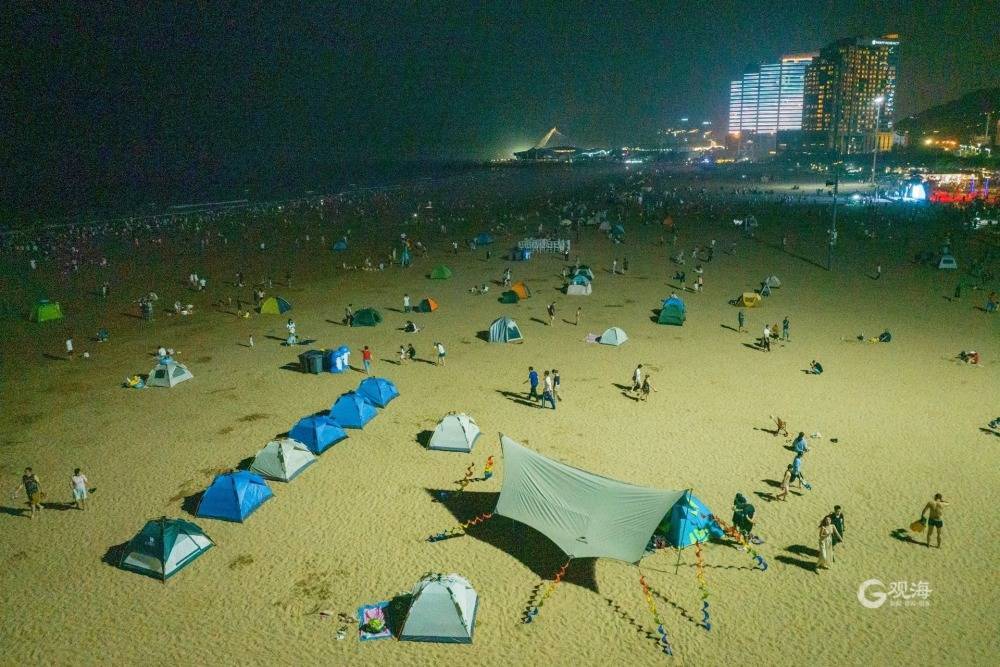 在沙滩上露营,感受夏夜浪漫。