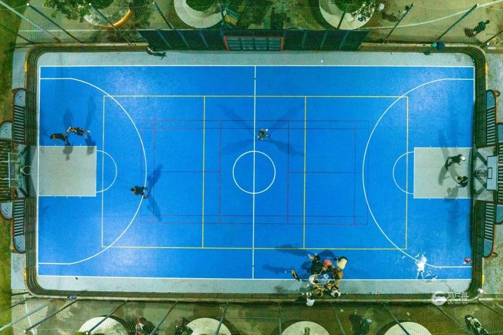 青年们在灯光球场上挥洒汗水。