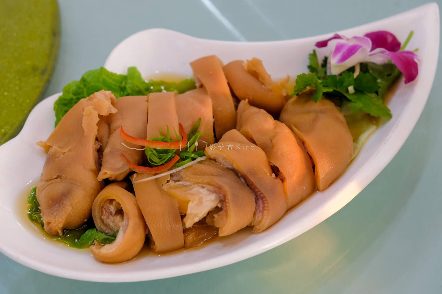 我那朋友,叫的并不只有我一个人,还叫了几个朋友,有我认识的,也有我不认识的,不过我一社恐,只敢默默吃饭,也不敢多说话。MAYBE需要几杯酒下肚才能给我壮壮胆吧!先上桌的是两道凉菜,百味猪手和捞汁鲍螺片,冻猪手清凉爽口软嫩耐嚼,滋味不错,鲍螺片爽脆入味,鲜甜好吃!