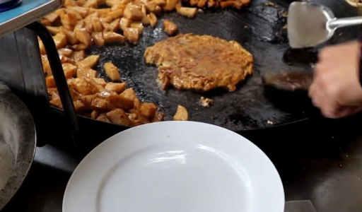 平常小吴吃的蚝烙基本上也就20元最贵了,不过好在这家店的份量还是蛮多的。蚝烙是把生蚝放进红薯粉糊里,放在油里煎出来的。即使是煎的食品,这里的油确实不多。中途会放鸡蛋,让蚝烙煎出来更加金黄诱人。在过去,做蚝烙用猪油,放的是鸡蛋,就像大叔说现在生活好了,不比那么讲究。不过在汕头,还有很多家是按照原来的做法做的。不知道你吃过没?