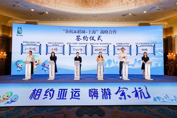 当天,余杭区文化和广电旅游体育局、稻城县文化广播电视和旅游局,与驴妈妈旅游网、上海旅游集散总站有限公司等,签署了合作协议。
