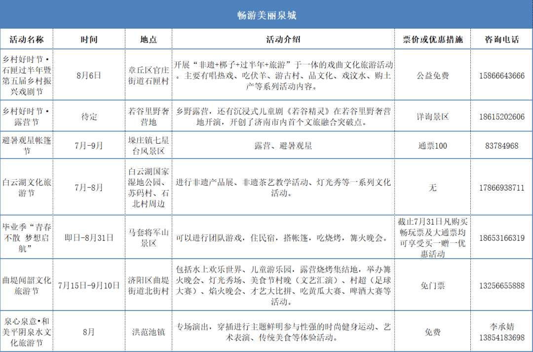 炎炎暑热,避暑游受到多数游客的青睐,济南南部山区、章丘、莱芜、长清等山水资源丰富的区县成为夏季热门旅游目的地,各区县开展了一系列露营节、乡村游等活动,让大家在这个夏天享受自在多彩的漫游时光。