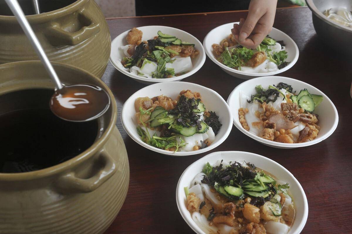 卷筒粉是桂南地区的⼀道小吃,通常用来当早餐,如今已遍布南宁大街小巷。
