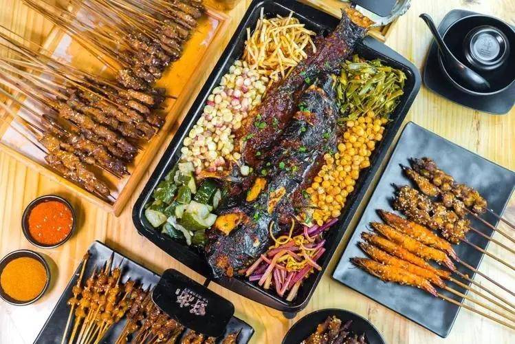 烧烤食材也是多种多样,肥牛、牛肉、豆腐皮、掌中宝、黄喉、大肠……还有烤黄喉、烤鸡屁股、烤蛇肉、烤牛欢喜、烤蝗虫……你想得到的想不到的这里都有。