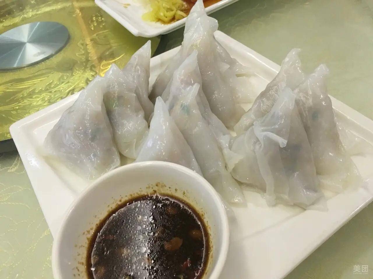 馅料是油炸叉烧、猪肉、冬菇、马蹄等等,搅拌而成,米香浓郁,味美爽口。粉饺搭配好CP黄皮酱,更是鲜香清爽。