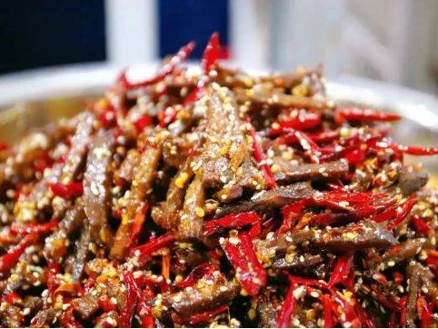 在盐帮菜的世界里,冷吃牛肉一直是祖师爷一般的存在,火了这么多年,依然深受食客们喜爱,经典不愧是经典!曾经,自贡盐场兴旺,所有的牛都被用于运盐,被淘汰下来的牛就分给了盐工抵付工资,慢慢的,就被盐工研究出了好吃的吃法:牛肉切成条,先煮后炸,等到牛肉被炸干水分,才出锅,所以,冷吃牛肉这道菜很干很硬,富有嚼劲,且香而辣,现在很多年轻人更喜欢将它作为手撕牛肉,撕着吃,与其说是一道菜,不如说是美味小零食。