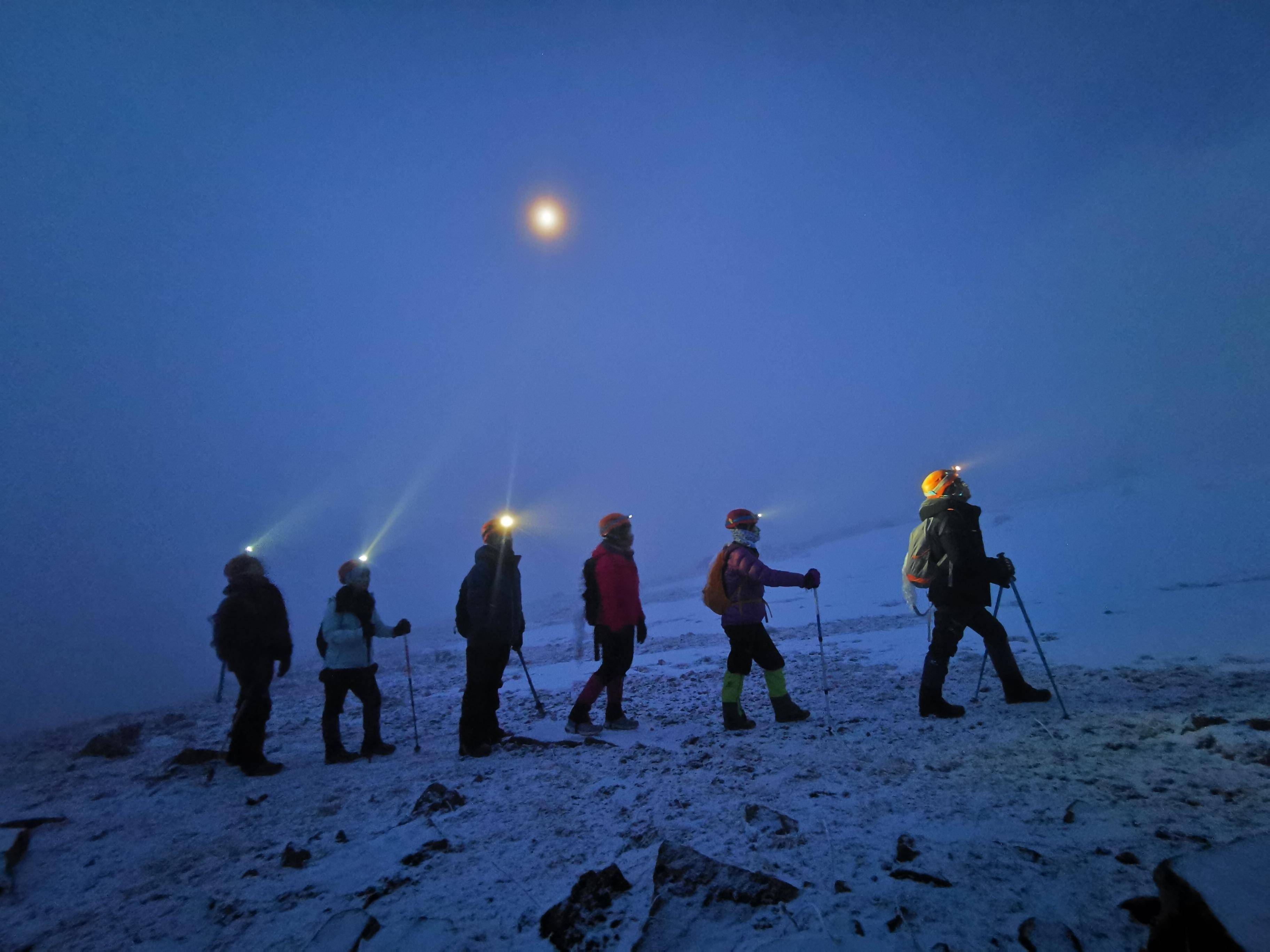 天气突变—所有的挑战开始了5月3日,今天一大早起来一看惊呆了,昨日的灿烂已不存在,整个大本营银妆素裹、分外妖娆。可是我们不是来欣赏雪景的,而是来登山的。天气像个顽皮的孩子给我们开了个严峻的玩笑,而且丝毫没有停止的意思,天空没有一点阳光,而且还飘着雪花,最重要的是已经开始有队员出现不同程度的高原反应。经左右权衡后,苏拉做出决定,登奥太娜的队员按原定计划冲顶,而奥太美的队员滞停大本营,在高山向导顾铭的带领下进行技术性训练。我们参加训练的共有七个人,被顾铭分为3组进行训练:我和唐哥、唐嫂一组,海豚和风风一组,张汉东和吉尼亚一组。漫天风雪,能见度很低,加大了我们的行进难度。唐哥在前、我在中、唐嫂在最后,雪坡一个接着一个,让人在绝望的努力中艰难的挣扎。脚下的痛没过脚踝,有的甚至到了小腿甚是耗费体力。由于三人的节奏不一致,一段后由唐嫂在前,唐哥在后,我仍然在中间。结组进行,结组讲的是团队协作的精神,要顾全大局,不能按着自己的节奏来。过了一段时间后唐哥实在不能适应我们的节奏,为了不拖累我们退出了结组,我和唐嫂结组。快到垭口时候,唐嫂开始觉得胸闷、想吐,是高原反应来了,于是唐哥陪唐嫂先下撤了。我到那口的时候,顾铭已经在那里等我们了。这时俄罗斯小伙子吉尼亚也出现了严重的高原反应,于是他也在一名协作队员的陪同下下撤。训练的人就只剩下我、张汉东、海豚和风风。刚开始是最基本的滑坠制动训练,接下来由顾铭和张汉东为我们演示七分之一救援,真是一个庞大而复杂的救援系统,一般用于冰裂缝救援中。见顾铭熟练的打好抓结,迅速切换保护点,安装上升器和两个滑轮组……系统安装好后开始演示救援。对于这么复杂的技术,我们只要观察,我们今天的重点是熟练的掌握过错点,使用上升器和下降器。在顾教练的指导下我们4人基本算是掌握了要领。回营的路上仍是漫天大雪,回到了营地我突然觉得自己的脸有灼热的感觉。原来我犯了一个严重的错误,没有擦防晒霜。由于雪对紫外线的反射是100%,我的脸灼伤了。在这样恶劣的天气下,仍然传来了振奋人心的消息,登奥太娜的队员中只有2名没有上顶,其余队员全部登顶,登顶的队员个个被紫外晒伤的奇形怪状,整个队伍像一个大马戏团。又是一个热闹的夜晚,登顶胜利的喜悦与战胜自我的骄傲,交相辉应,奥太娜队员的登顶给我们队伍注入一剂强心剂,希望他们的胜利给我们带来好运气,能有一个好天气。