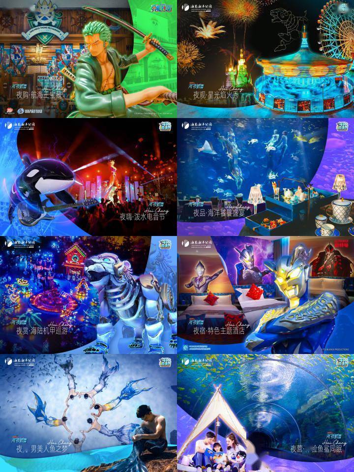 7月12日,海昌海洋公园与携程旅行网共同推出的“海昌·夜时光3.0”生态体系正式面市,创造性地构建出八大“海昌·夜鲸喜”玩法。包括:夜嗨·泼水电音节、夜购·航海王宝藏、夜秀·男美人鱼之梦、夜观·星光焰火秀、夜赏·海陆机甲巡游、夜品·海洋饕餮盛宴、夜宿·特色主题酒店、夜营·体验鱼鲨同眠。