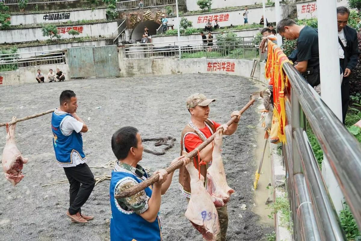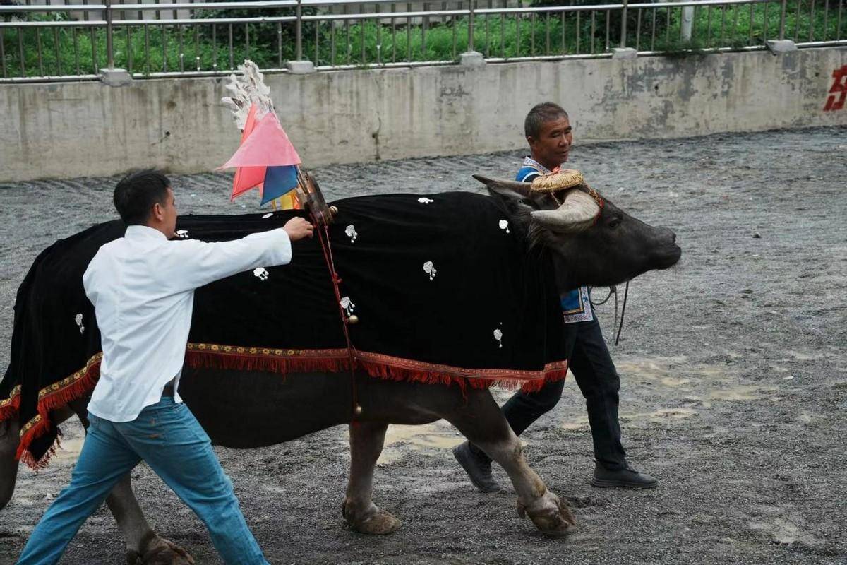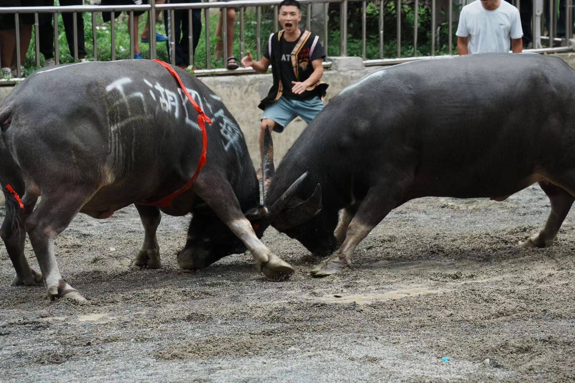 两头牛特别壮实,各不相让,这场比赛一直僵持了很长时间。