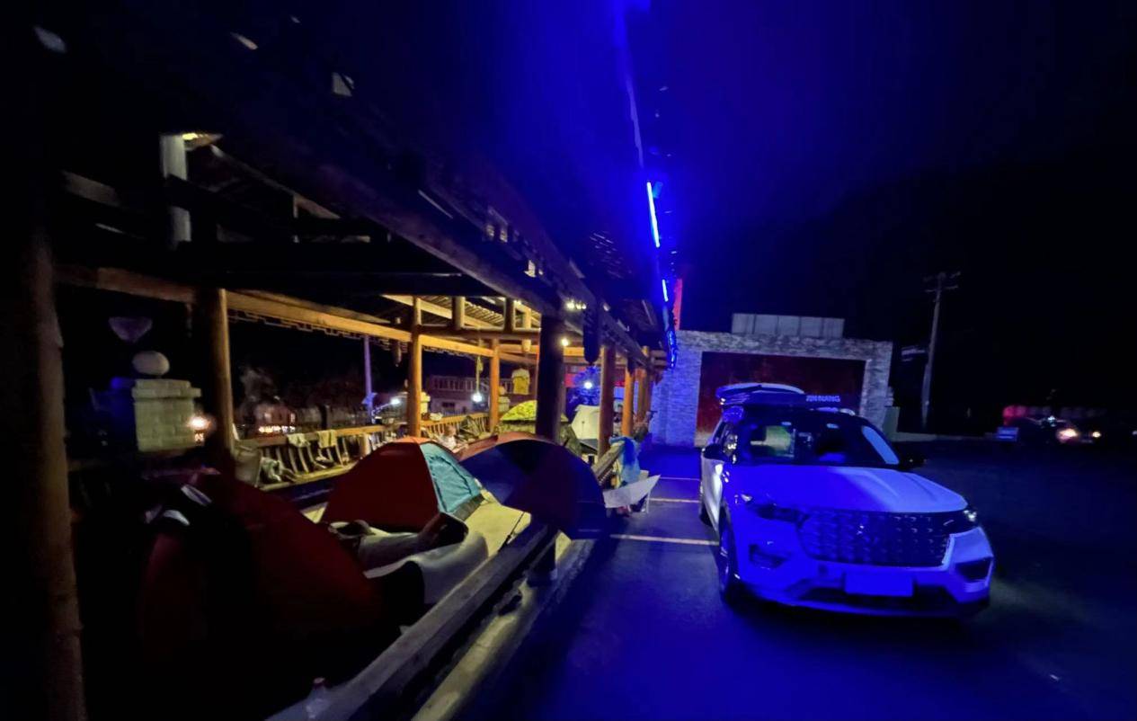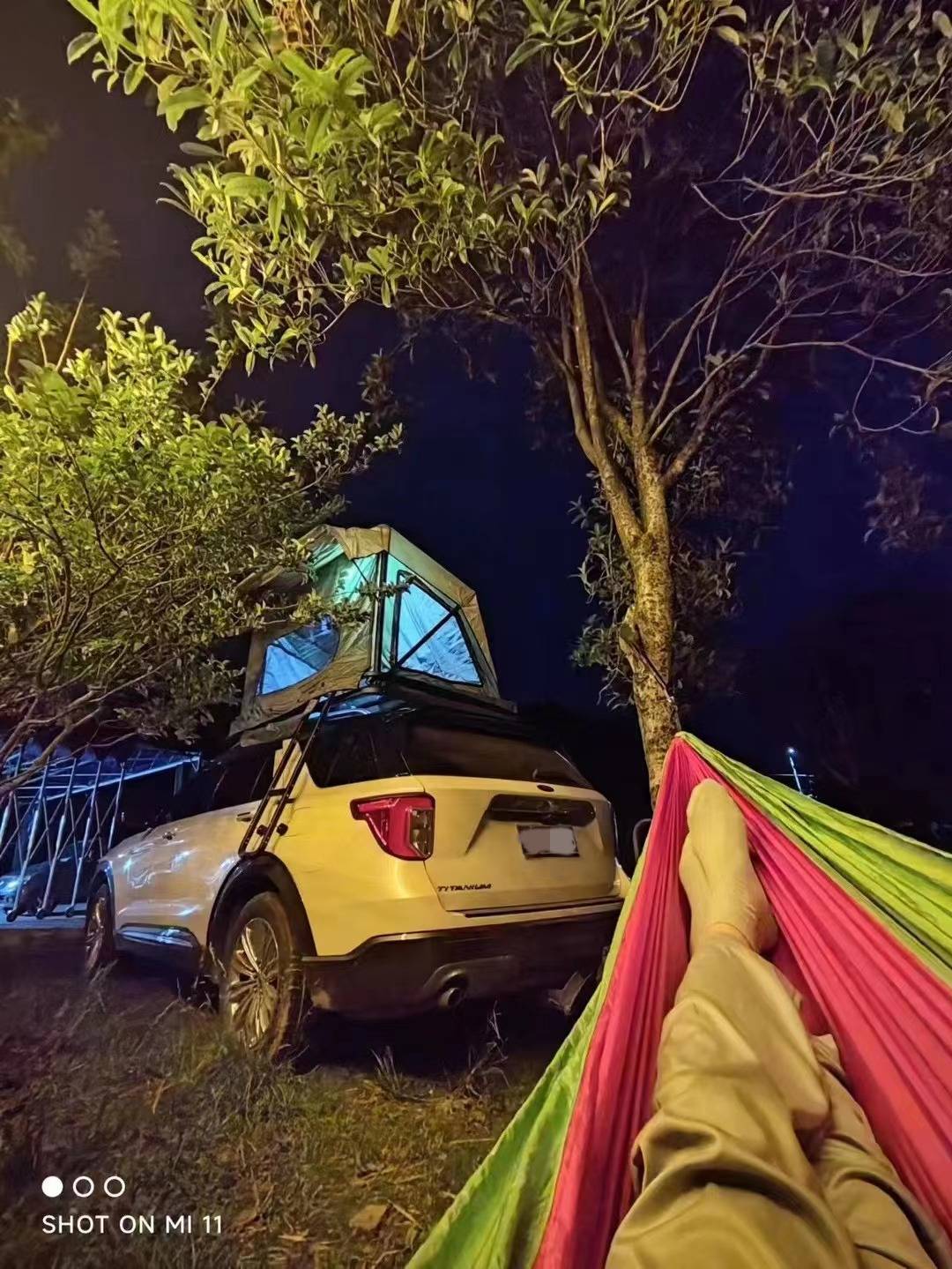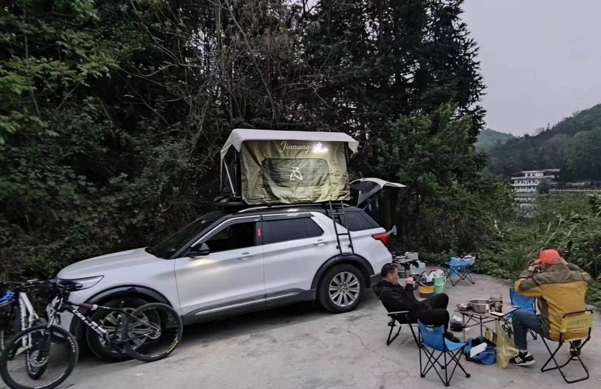 看到这个架势大家应该知道了吧,对的,露营。住酒店当然是更方便,拎包入住,但是我更喜欢露营,走到哪里就住到哪里,这样才是最真实的人间烟火气。我们车上人不多,后排和后备箱空间正好拿来装东西,帐篷、桌子、板凳、整理箱、水果、零食....看着就一台车两三个人,但就是像变戏法一样能搞出好多东西来,十分钟我们就已经安营扎寨了。
