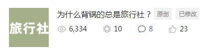 我的上一篇原创《为什么背锅的总是旅行社?》得到了大家的认可,阅读量直奔1w+而去。