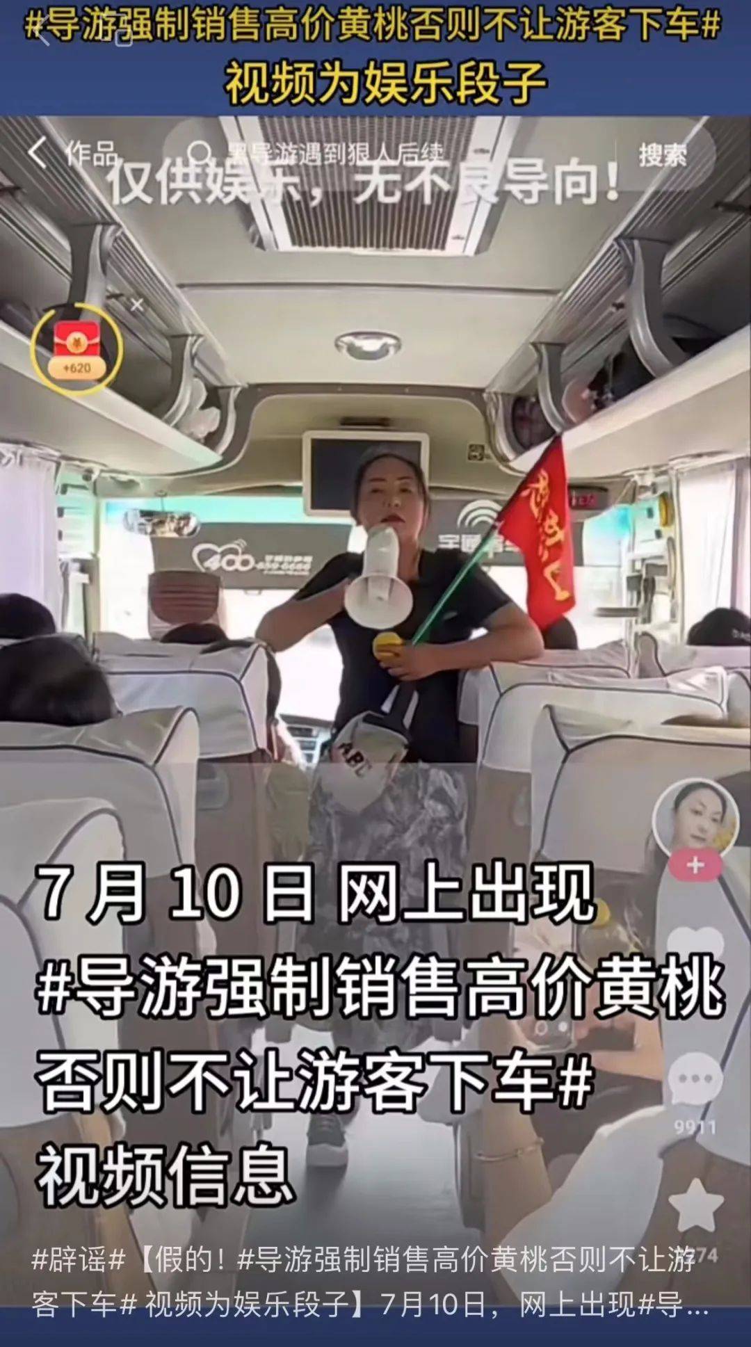 7月10日,网上出现“导游强制销售高价黄桃否则不让游客下车”视频,又引起了一轮疯狂转发。