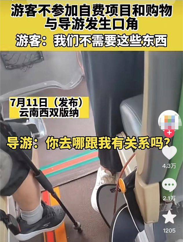 7月11日,网传“西双版纳旅游,不参加自费和购物,导游翻脸,语言暴力”引发网民关注。