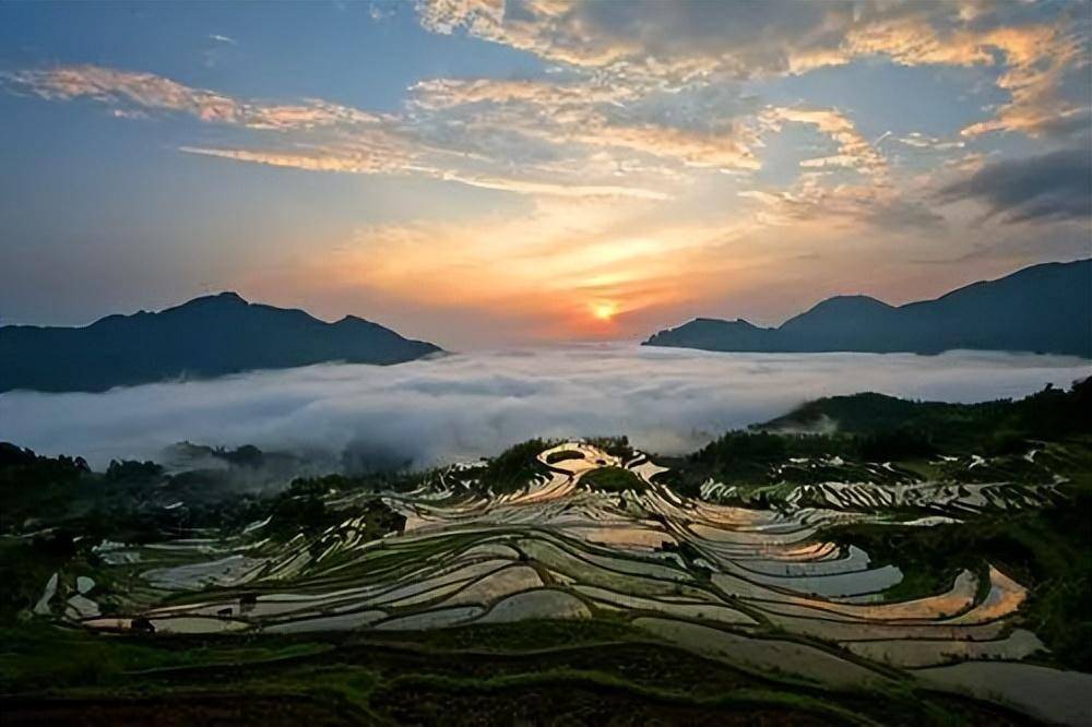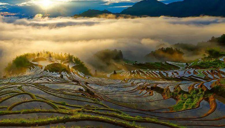 梯田最美的模样,就是被晨雾包裹着的时候,所以这里最浪漫的事,就是在七星墩静静守候一场云海日出。