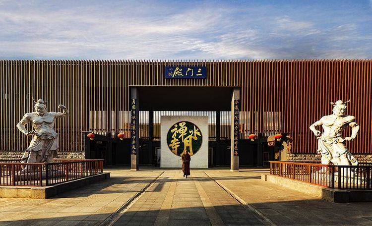 这里便是水月禅寺,其位于徐州市的睢宁县白塘河湿地公园在之中,是在原本的地藏寺基础之上进行复建而成的一处寺庙,如今也是一处国家4A级景区,所以说这里也算是一处历史悠久,文化底蕴深厚的旅游景区,颇有旅游价值,再则这里值得一游的原因还在于,这个寺庙与我们平日里所见的寺庙,有着诸多的不同。