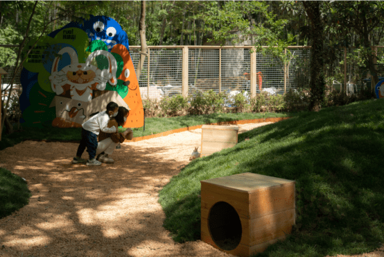苏州洛嘉部落“旺山遇见卢浮宫”项目结合洛嘉森乐园、洛嘉童行、芊熹之光、星星花园、森悦市集、洛宿营地六大核心业态,是奥雅面向C端市场的转型之作。其中洛嘉森乐园室内空间是集主题拓展设备、海洋球、角色扮演、玩沙、手作为一体的亲子体验乐园。室外空间是将森林中的溪流、树洞、洞洞山等场景有机的融合在坡地区域,打造多场景、多玩法的亲子探索乐园。