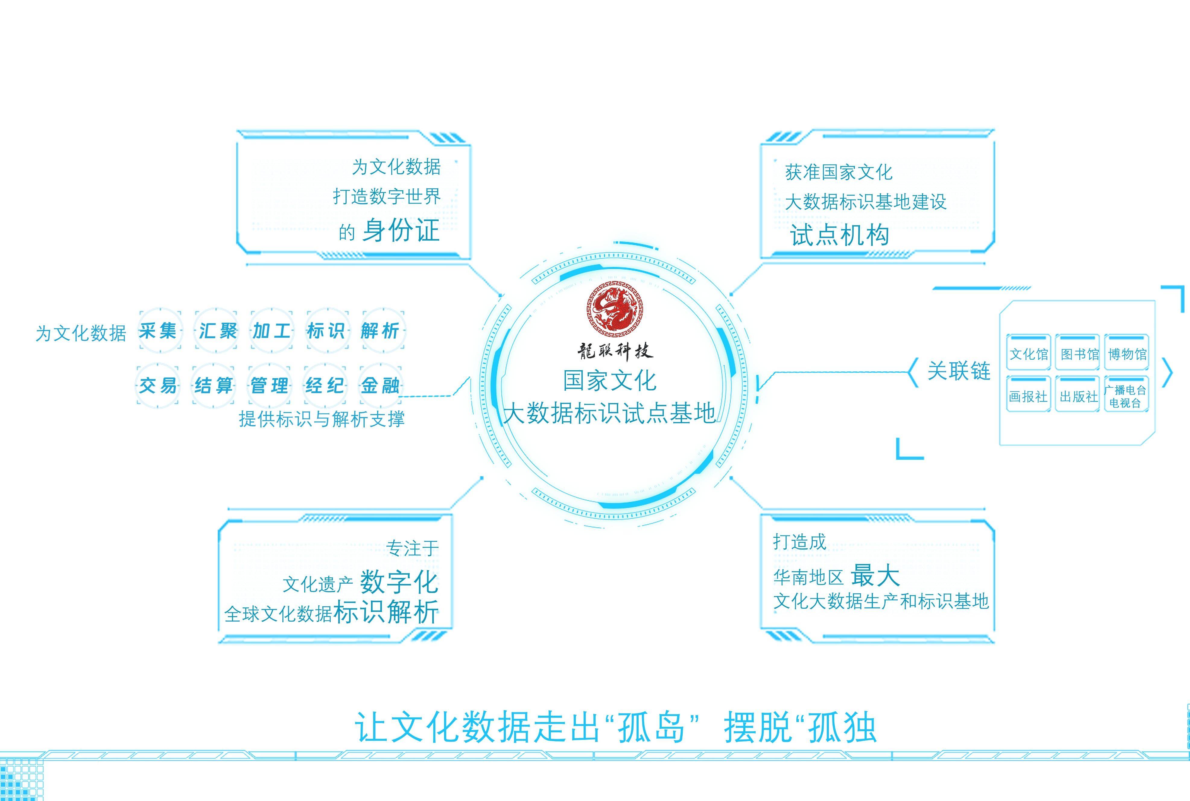 今年3月,中国公共关系协会文化大数据产业委员会启动了国家文化大数据标识基地建设试点工作,龙联科技积极响应并提出申请。5月,专委会批复同意龙联科技参与国家文化大数据标识基地建设试点,对外开展文化大数据生产和标识解析服务。各类文化机构和个人都可以通过龙联科技的服务接入国家文化专网,从事数据的采集、关联、重构、呈现、交易。