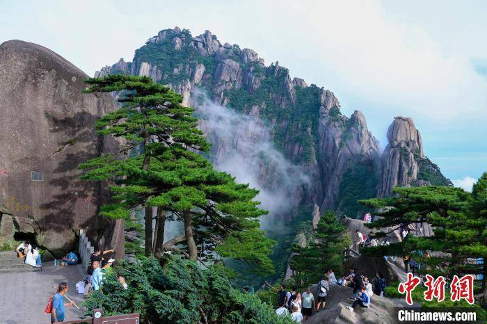 7月13日,雨后的黄山千峰耸翠,风景优美,游客漫步在满目翠绿的山林间,感受夏日黄山清凉魅力。连日来,前来避暑纳凉的游客络绎不绝。