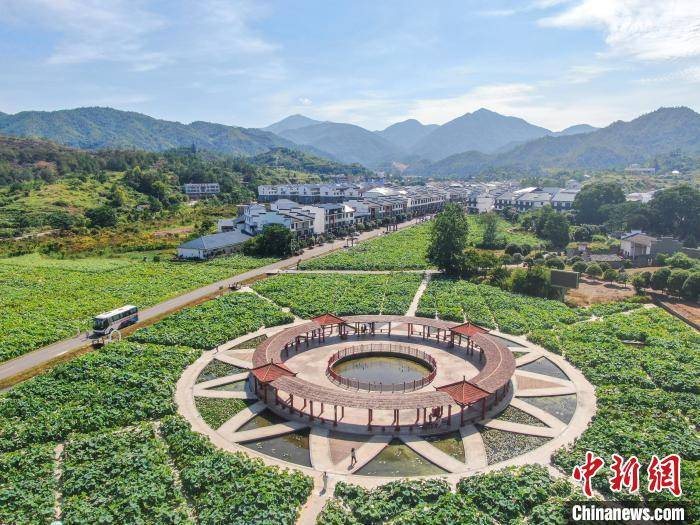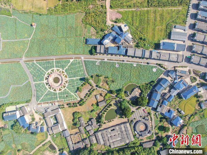 图为航拍大畲村背靠青山,屋舍俨然,荷池密布,风景秀美如画。 刘力鑫 摄