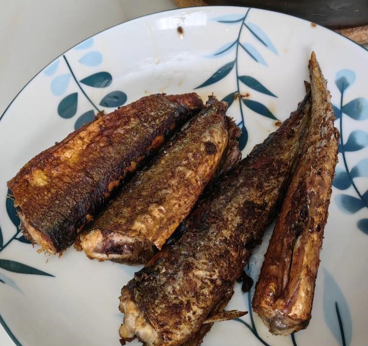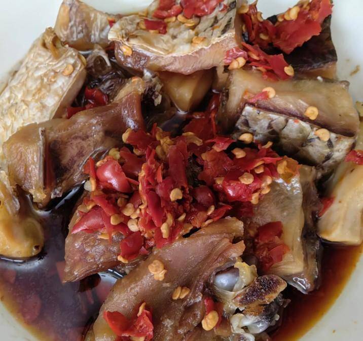 这个腊鱼很入味,其实也不算辣,但就是太咸,感觉早上配白粥还行,配米饭真的太齁嗓子,喜欢吃清淡的程木青根本下不了筷子。这个煎鱼也是如此,炸得外焦里嫩看着很诱人,奈何太咸,吃一口滋味无穷,再吃一口感觉自己掉进了盐罐子。