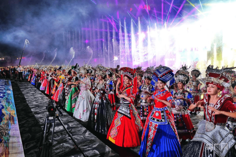 以璀璨夜色为景,以悠悠沱江为台,活动在大型舞蹈《鼓舞凤凰》中拉开序幕,上百面苗鼓同时敲响,鼓声震天,扣人心弦,百余名身着盛装的苗族阿妹载歌载舞,喜迎八方来宾。