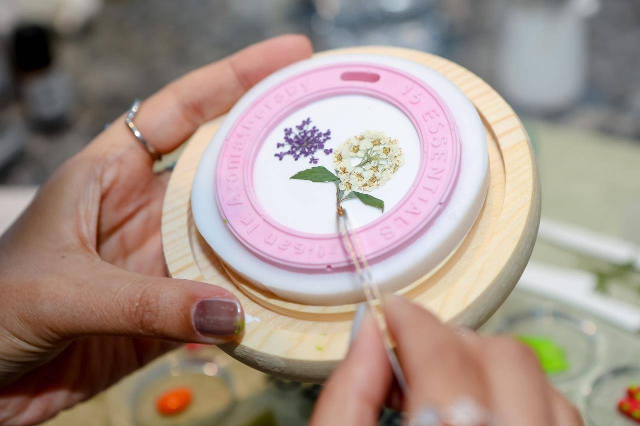 在7月8日举办的品牌联名发布活动中,酒店与十五元素联合为媒体奉上别具匠心的精油手作活动,让他们亲手制作定制香牌,用自己喜欢的永生花搭配水粉色彩作为装饰,从视觉、嗅觉与触觉上全面体验“畅快呼吸、祝你好梦与高光时刻”三款精油的魅力,感受精研智造的芳香之美和植物的治愈之力。