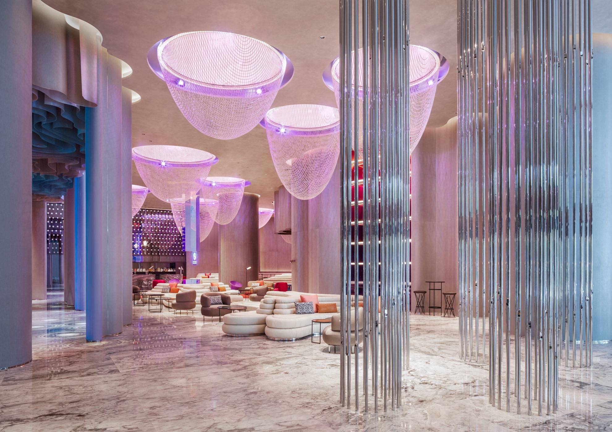这次活动,酒店特别为媒体朋友们打造了一场艺术探索之旅,让他们于流光溢彩的音乐花园之中,跟随声音的变化,找寻对应的设计元素,参与【听声寻设计】趣味游戏,开启集音乐、时尚与设计交织为一体的潮玩之旅。当耳边响起风琴优美的旋律,这便是设于大堂正前方,受鼓浪屿风琴博物馆乐器启发而创作的互动艺术装置。拥有嘹亮嗓音的厦门传统高甲戏,在W精品店内以油画形式,将戏剧脸谱绘制于曲面的金属墙壁之上,这种美妙地诠释让这场游戏的探索更加令人惊喜。整体活动创意十足,巧妙地将酒店各处设计打卡点玩出新花样,让参与游戏的媒体大呼过瘾。