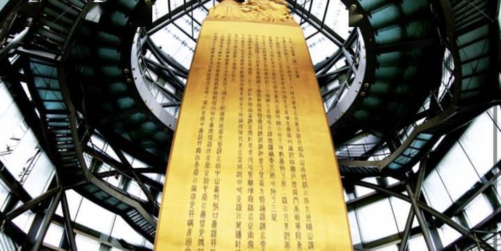 看完这个展览,不妨上到博物馆顶层,去看看“龙施雨沛”展区。这个展区有一枚巨大的印章。印章四面镌刻着《史记·河渠书》,即中国第一部水利通史,追溯了具有现代意义的“水利”一词的起源。读完印章上的文字,再透过环绕玻璃向外眺望,钱塘大潮、白鹭翩迁,蔚为壮观。