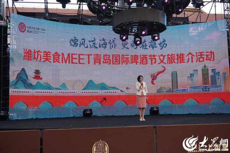 儒风连海岱,更好在潍坊。7月14日下午,潍坊美食MEET青岛国际啤酒节文旅推介活动在青岛市市南区上街里海誓山盟广场举行,向青岛市民及游客推介潍坊文旅资源,并展示潍坊的特色美食,吸引了众多市民和游客的前来。